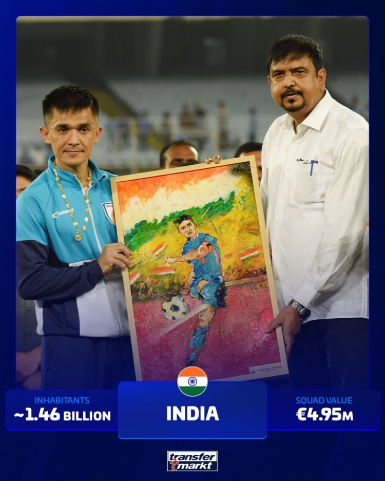 首先映入眼帘的是印度,这个拥有14.6亿人口的庞大国家,尽管其足球氛围不断发展,然而国家队的身价仅为495万欧元,仍未能走出世界杯的门槛。接下来是印尼,人口达到2.85亿,其国家队的身价为2950万欧,也未能在世界杯历史上留下自己的印记。