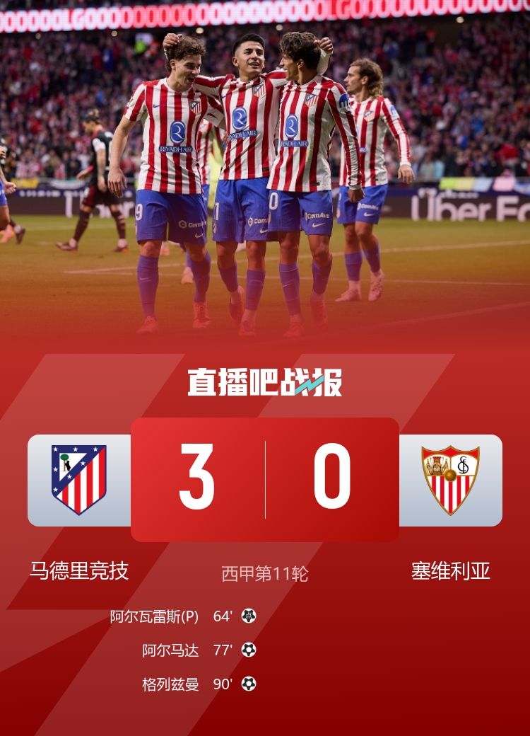 在11月1日的西甲联赛中,马德里竞技在利雅得航空大都会球场迎来了塞维利亚的挑战,最终凭借出色的发挥以3-0取得胜利。