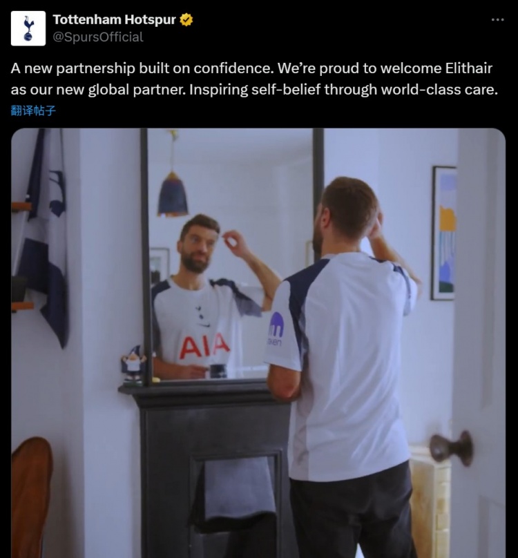 热刺在11月22日发出了一个震惊世界的消息,竟然宣布与全球知名的植发诊所Elithair达成合作关系。原来,他们认为在绿茵场上的自信,不光来自于脚下的技术,更可能是来自于那一片往昔繁茂的发丝。热刺的官推更是洋洋得意地表示:“这是一项建立在自信心基础上的全新合作关系。”听起来这合作关系更像是为了拯救那些发际线正在崩溃的球迷们。