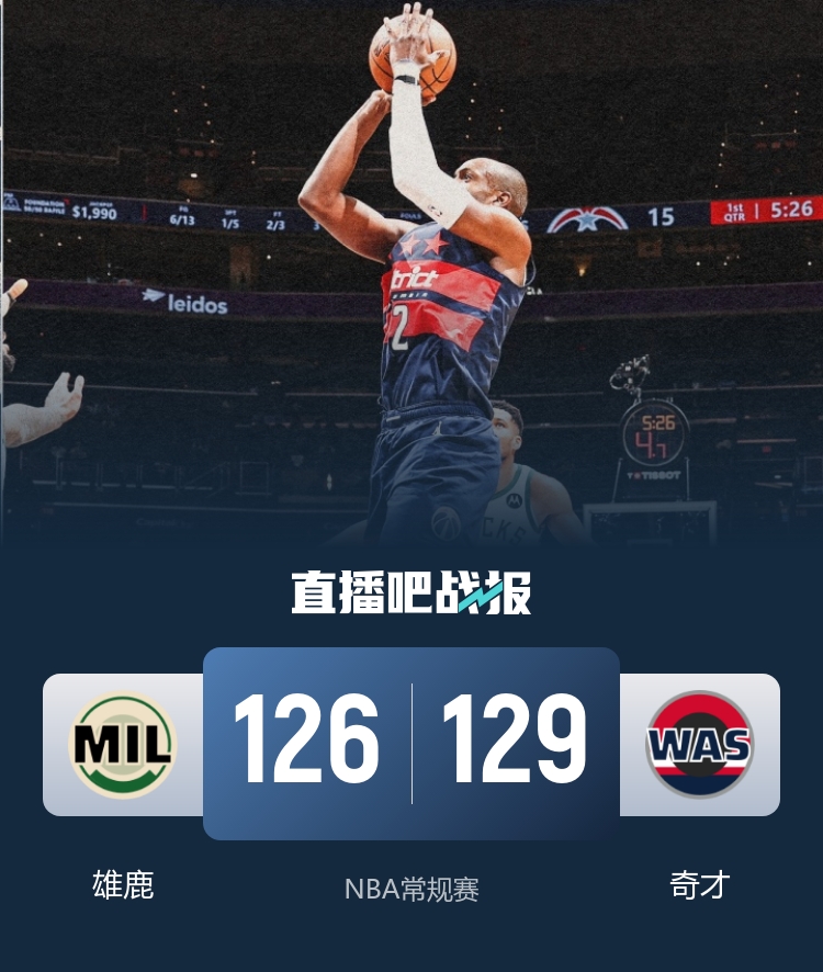 12月2日讯,NBA常规赛今日继续进行,东部垫底的华盛顿奇才主场迎战密尔沃基雄鹿。