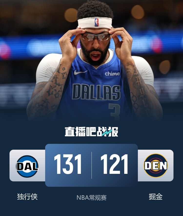 双方球队的数据也颇为引人注目。掘金方面,约基奇再度展现MVP的实力,砍下29分、20个篮板和13次助攻的豪华数据,斯潘塞·琼斯紧随其后,贡献28分和5个篮板。而独行侠则由戴维斯领衔,他豪取32分、13个篮板及4次助攻,内姆哈德也表现不俗,交出了28分、3个篮板和10次助攻的成绩单。最终,这场胶着的对决成为了球队荣耀之路上的又一重要一战。