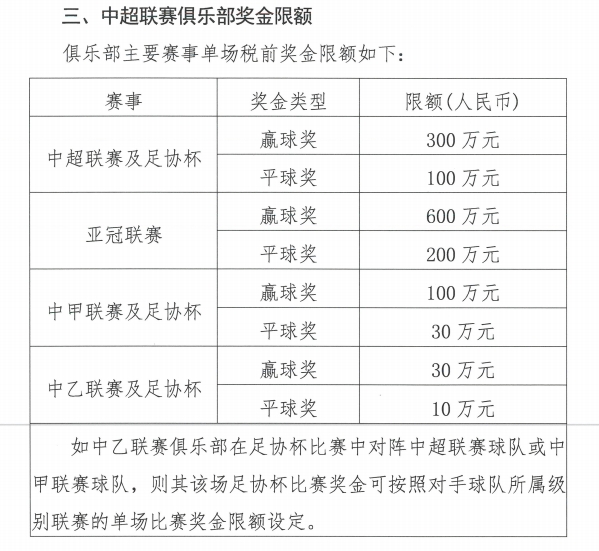 在这个激动人心的赛季,随着中足球协会的最新通知,三级联赛的财务纪律显得愈发重要。围绕着球队的奖金设置,俱乐部的管理层面临着新的挑战和责任。特别是在中超联赛,每场胜利的喜悦已经被严格的规则所规范:单场赢球奖金不得超过300万元。这不仅是对俱乐部的收支控制要求,更是对整个联赛公平竞争环境的呵护。