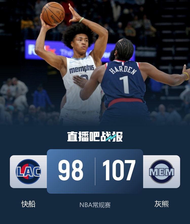 下半场开始后,快船的命中率有所下滑,而灰熊的表现愈发出色,逐渐实现了比分的反超。尽管巴图姆的三分球为快船稳住了局势,但进入末节,双方的争夺愈发激烈。关键时刻,快船频频失误,投篮不中,灰熊趁机打出一波9-0的高潮,锁定了胜局。最终,快船以98-107不敌灰熊,未能实现反弹。