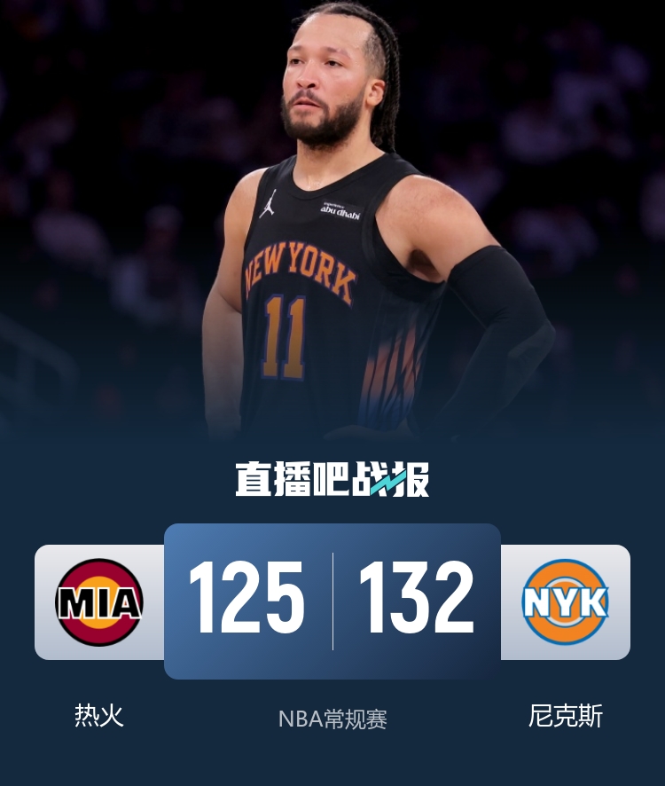 比赛结束时,尼克斯以132-125的比分逆转热火,继续巩固在东部的优秀排名。双方的数据表现同样值得关注:尼克斯的布伦森表现傲视群雄,砍下47分、3个篮板和8次助攻;布里奇斯也不甘示弱,贡献了24分,阿努诺比也有18分进账。而热火方面,韦尔的28分和19个篮板同样抢眼,为球队的努力增添了亮点。总的来说,这是一场值得铭记的对决,各自的拼搏精神和团队配合都让比赛充满了悬念和激情。