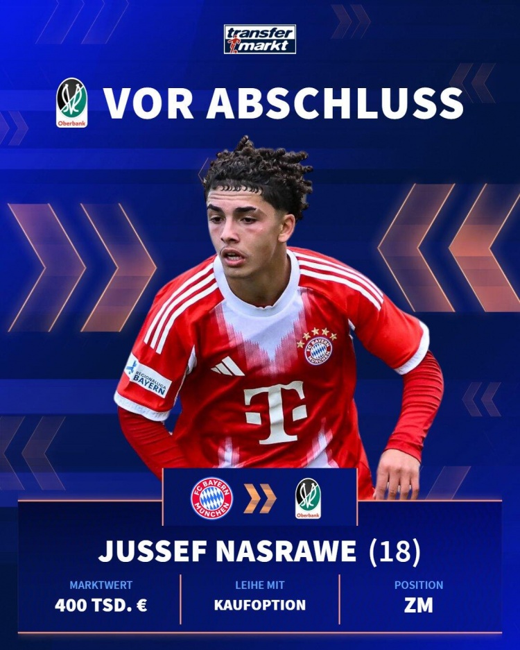在1月23日的消息中,有关德甲球队拜仁慕尼黑的动态再次引起球迷们的关注。根据Sport.de的报道,拜仁二队的年轻中场球员尤瑟夫·纳斯拉维即将外租加盟奥地利甲级联赛的列特队。这一协议的达成,为纳斯拉维提供了一个重要的机会,继续发展他的职业生涯。