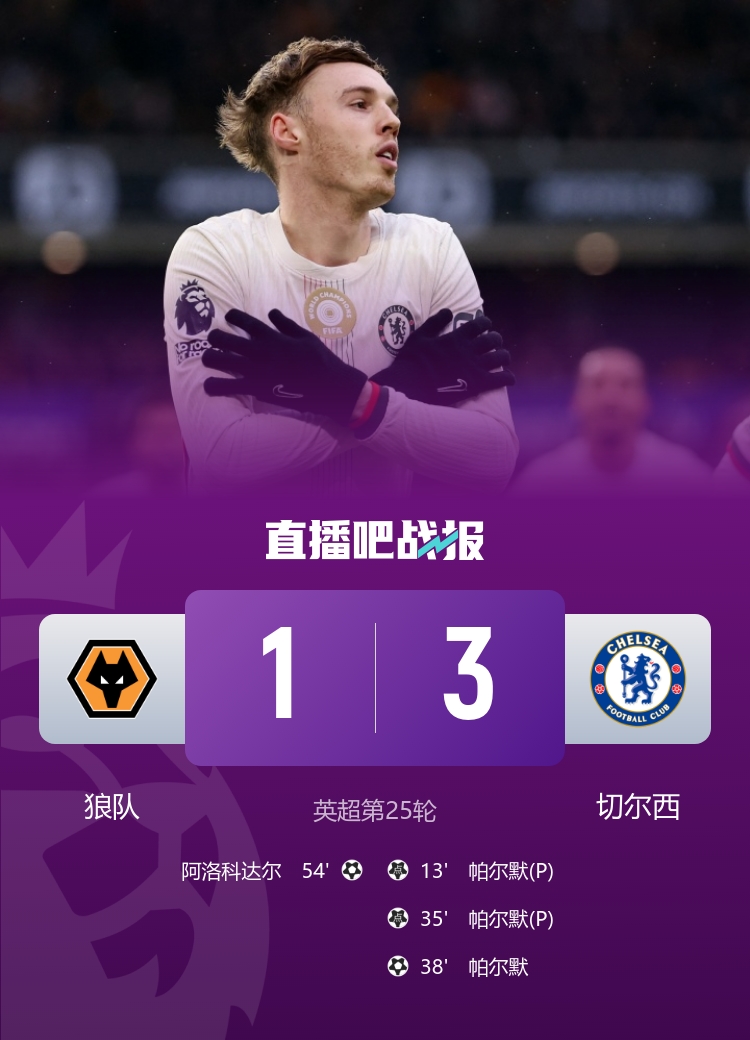 易边再战,狼队在第54分钟通过阿洛科达尔的进球扳回一城。尽管如此,切尔西在场上表现依旧稳健,尽管阿德里安·桑托斯因伤退场,但球队的士气并未受到影响。狼队在接下来的时间里多次进行攻势,但未能有效威胁切尔西的防线,最终比分定格在3-1,切尔西成功收获四连胜。