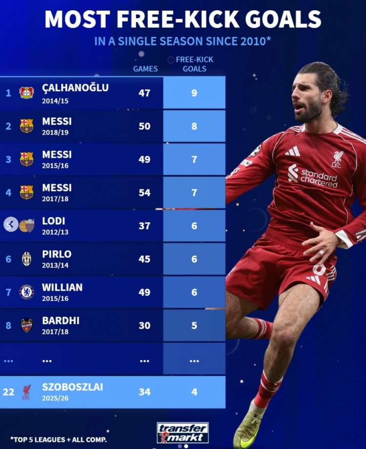 在那个不可预知的夜晚,利物浦面对曼城的挑战,原以为凯旋而归,可最终却被对手逆转,以1-2遗憾告负。尽管结果让人心痛,但在这场激烈的对抗中,一个人却依然闪耀着光芒——索博斯洛伊。他通过一记精妙的直接任意球,成功为球队打入一球,这也是他本赛季所取得的第一个任意球进球,使得他的名字在这个充满传奇色彩的榜单上不断上升。