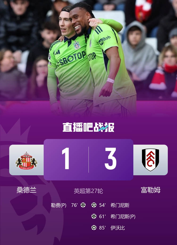 随着比赛的进行,第53分钟命运的转折终于来临,富勒姆的希门尼斯如同一只猛狮,跃起甩头,精准地攻破了桑德兰的防线,将比分改写为1-0,瞬间点燃了球队的斗志。随即而来的则是VAR的神判,第57分钟,布罗比因犯规被判罚点球,希门尼斯稳稳操刀,再次破门,富勒姆将优势扩大为2-0,仿佛巍峨的高山,令人难以攀越。