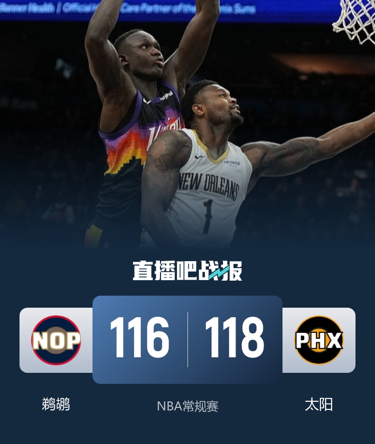 3月7日讯,在NBA常规赛中,鹈鹕和太阳两支西部球队的对决热烈进行。此时,太阳战绩为35胜27负,排名西部第七,而鹈鹕则以20胜44负的成绩位列倒数第三。