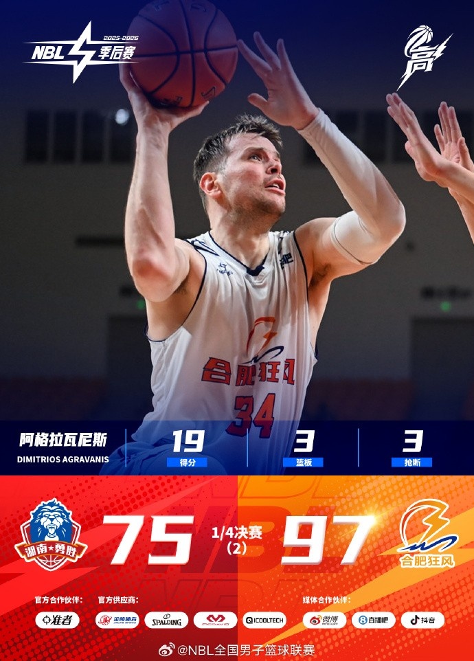 在NBL季后赛1/4决赛的第四场较量中,合肥狂风在客场以显著优势战胜长沙勇胜,将系列赛的总比分逼平至1-1,成功拖入决胜场。比赛伊始,合肥狂风便掌握了主动权,通过严密的防守和快速的进攻节奏,逐步拉开了与长沙勇胜的分差。