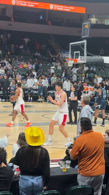 不久之后,奥斯汀马刺的球员犯规,混音队获得罚球,在这一几乎锁定胜利的时刻,小杨激情四溢,握拳欢呼,鼓掌庆祝。赛场边缘的他还不忘与马刺的球迷互动,甚至调侃几句,放松的状态与投入的心情显得格外明显。