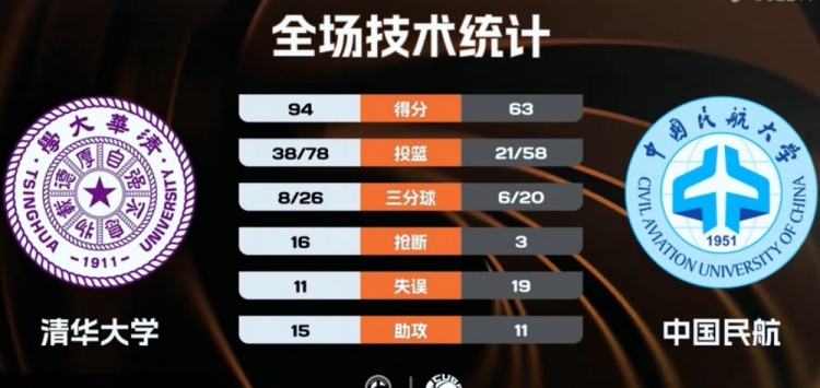 比赛进入末节后,中国民航再次经历了得分荒,四分钟内未能得分。此时,清华大学趁机发动进攻,一波8-0的高潮将分差扩大到近30分。尽管崔雍鑫通过制造犯规为中国民航拿下得分,但郑君豪的三分球迅速做出回应。最终,清华大学以94-63大胜中国民航,不仅继续保持不败的战绩,也展示了球队在攻防两端的强大实力。